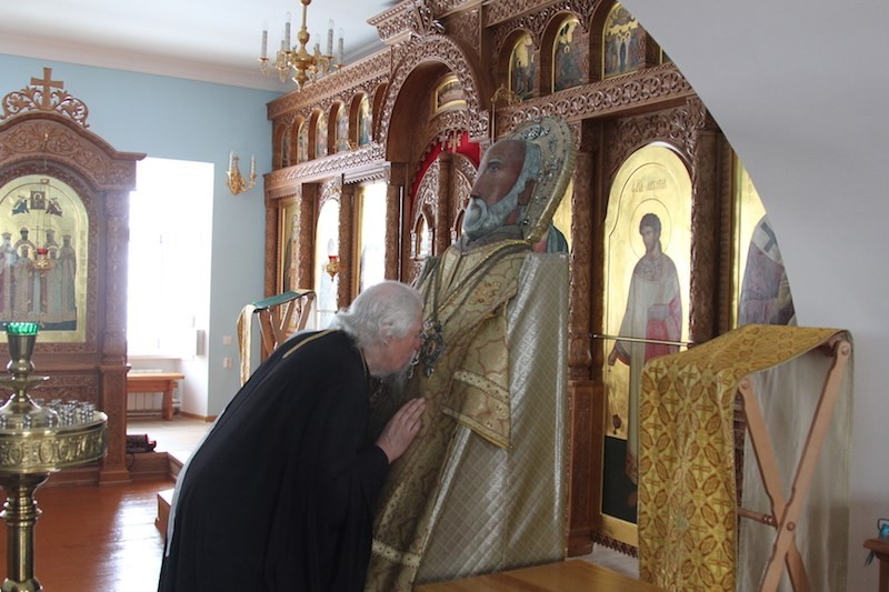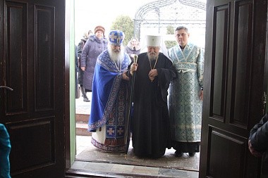 По завершении трапезы митрополит Варнава ознакомился с ходом реставрационных работ в Толгском храме монастыря.