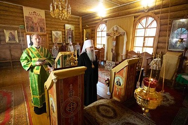 Его Высокопреосвященству сослужили протоиерей Сергий Куксевич, наместник обители игумен Мелетий (Кисняшкин).