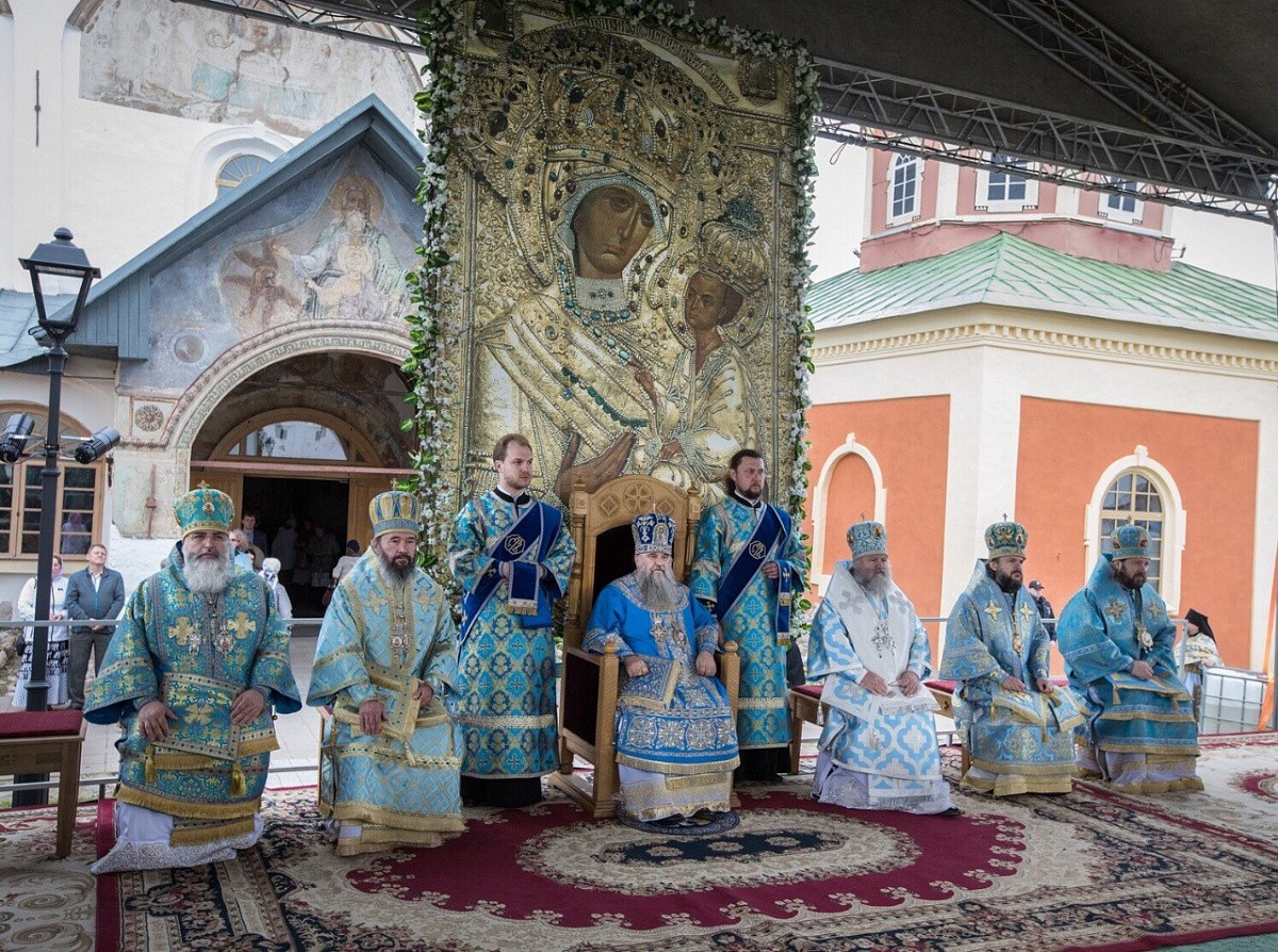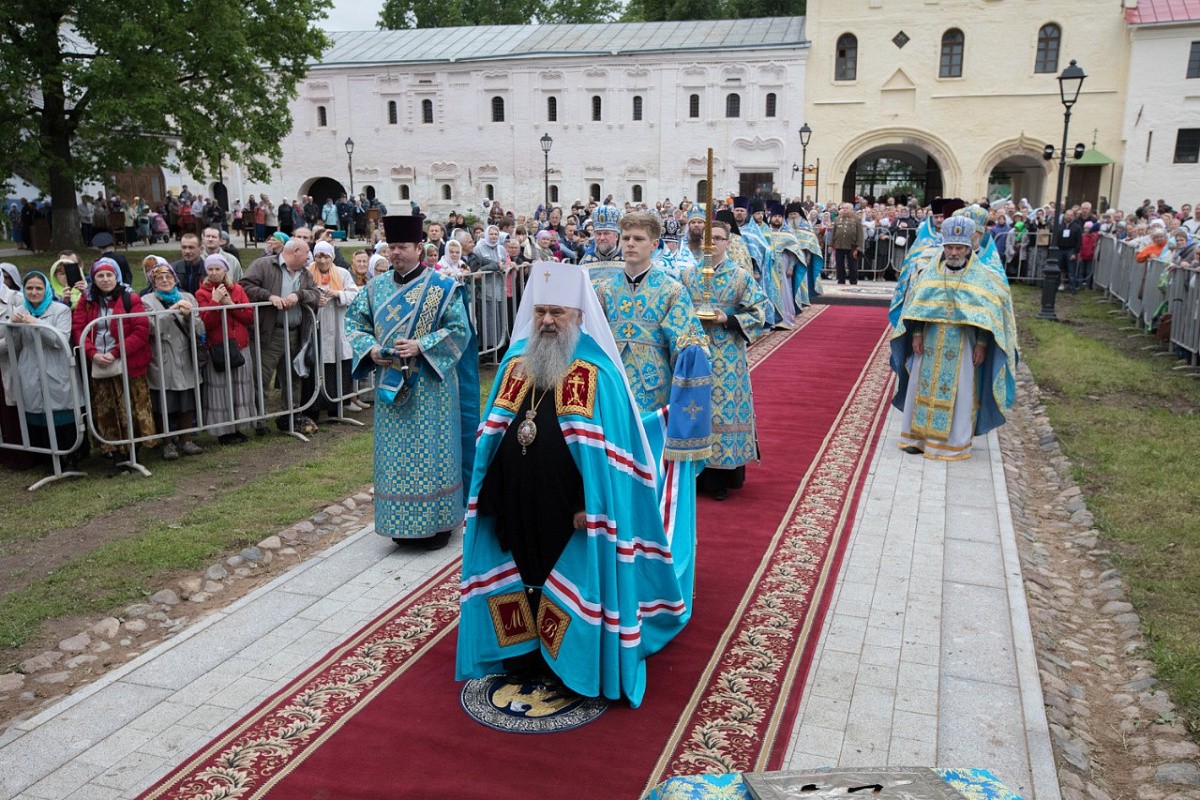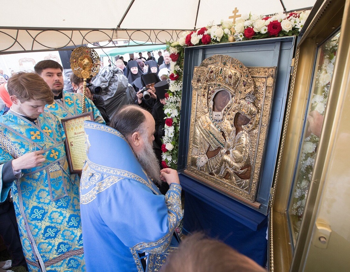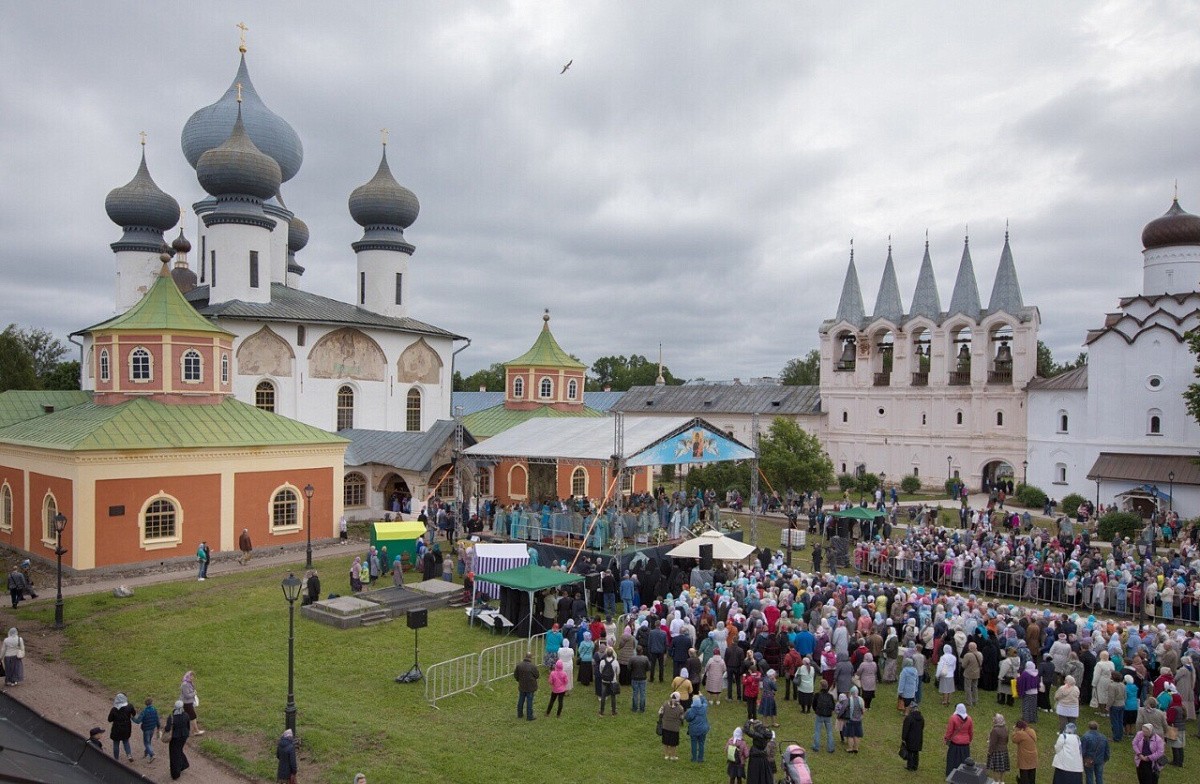Чудотворная Тихвинская икона Божией Матери была вынесена из собора и установлена в палатке. Перед ней было совершено моление.