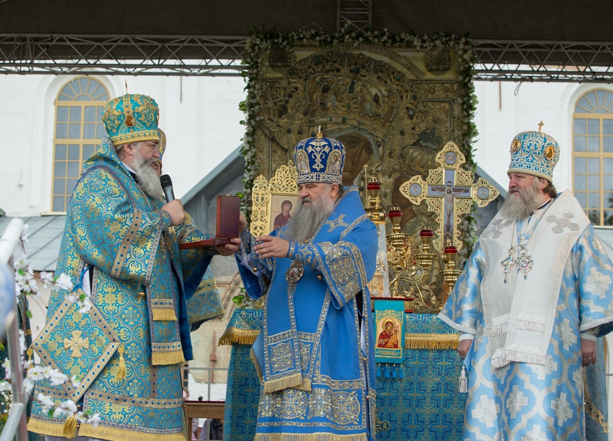 Митрополит Варсонофий подарил епископу Мстиславу крест и панагию, поблагодарив за организацию празднования.