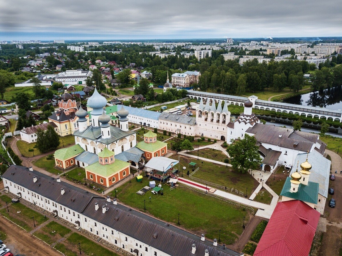 Тихвинский монастырь был основан в 1560 году для хранения Тихвинской иконы Божией Матери, чудесно обретенной в 1383 году: образ явился рыбакам над Ладожским озером рядом со Старой Ладогой. В середине 1920-х обитель была закрыта и разорена. Во время войны гитлеровцы вывезли икону. Она попала в Прибалтику, затем в Германию, а оттуда в США. В 1995 году монастырь был передан Русской Православной Церкви, началось восстановление Успенского собора. Главная святыня обители была возвращена в Россию в 2004 году.