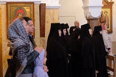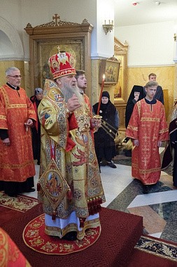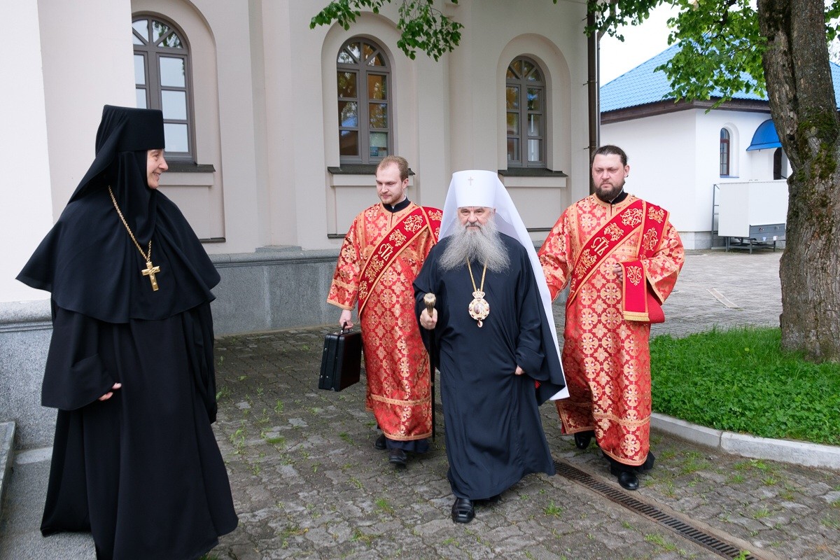 Его Высокопреосвященству сослужили секретарь Епархиального управления протоиерей Сергий Куксевич, клирики монастыря и другие священнослужители.