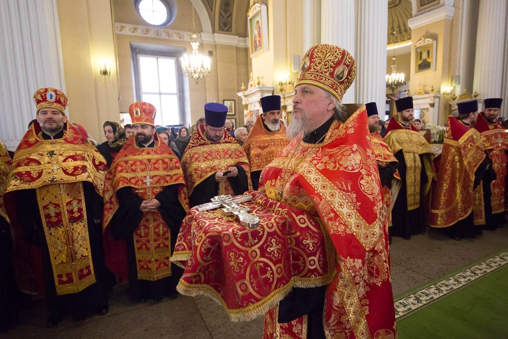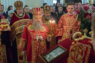 За богослужением молились игумении монастырей митрополии, присутствовали члены правительства города, спикер Заксобрания Вячеслав Макаров.