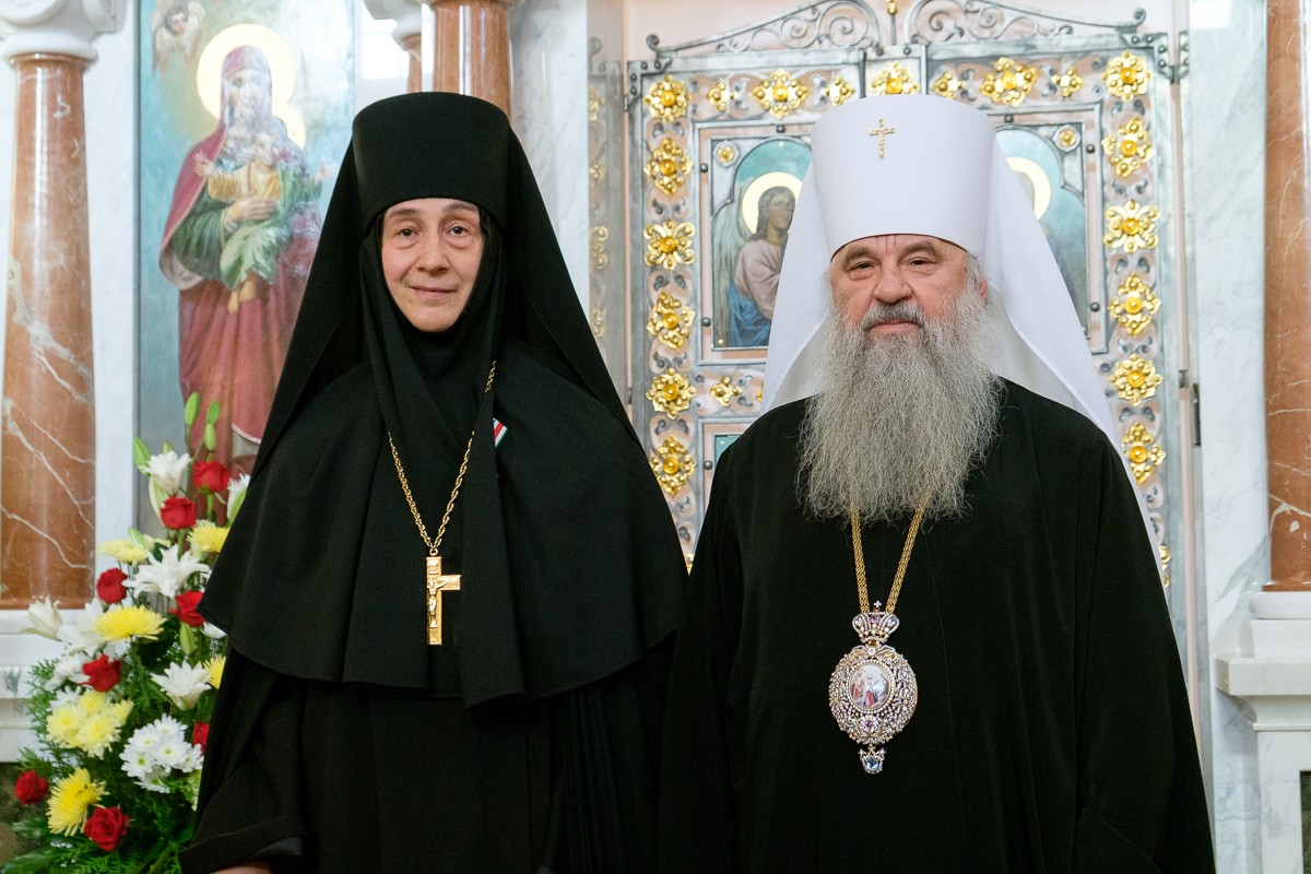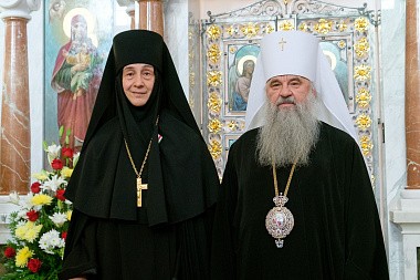 Медаль в память 100-летия восстановления патриаршества была вручена протоиерею Александру Демашкину, игумении Иларионе, казначее монахине Антонии.