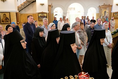 Монастырскому храму было подарено Страстное Евангелие. Его Высокопреосвященство владыка Варсонофий также поздравил с именинами благотворителя Константина Голощапова, пожелал ему многая и благая лета.