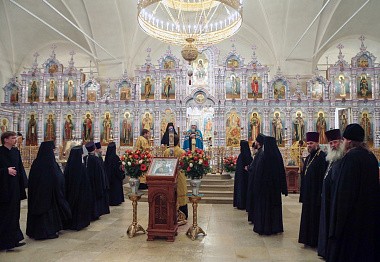 В Иоанно-Богословском храме обители праздничное богослужение возглавил митрополит Рязанский и Михайловский Вениамин.