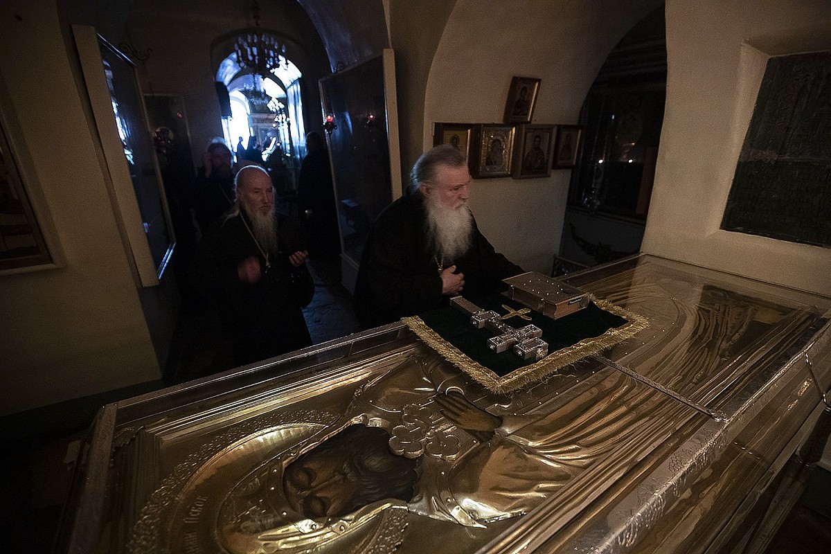Перед началом богослужения гостя приветствовал глава Псковской митрополии митрополит Псковский и Порховский Тихон.