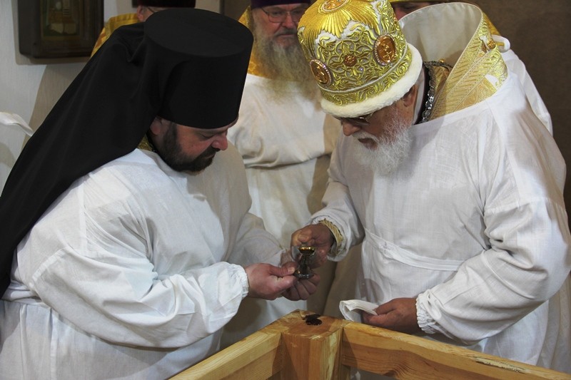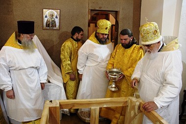 В завершение Литургии было совершено освящение колива, а также вознесена молитва святым Гурию и Варсонофию.