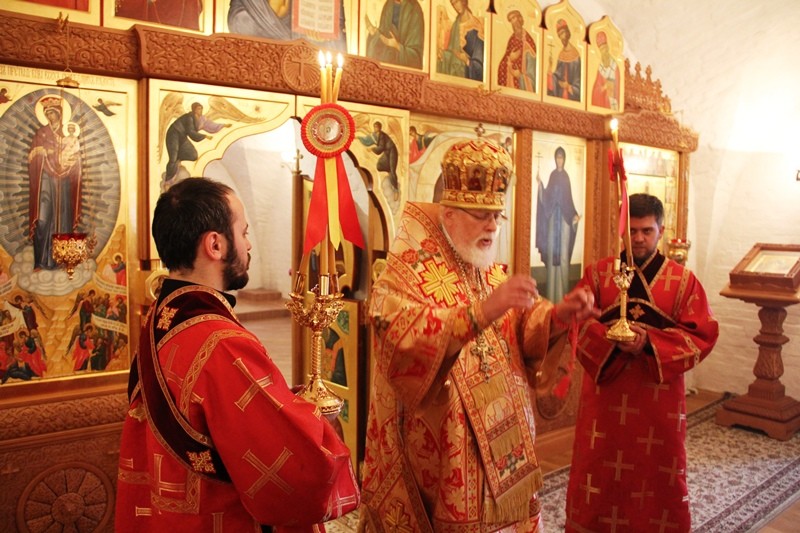 За Литургией Высокопреосвященнейшему владыке сослужили наместник монастыря игумен Димитрий (Севостьянов), братия обители в священном сане.