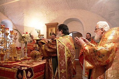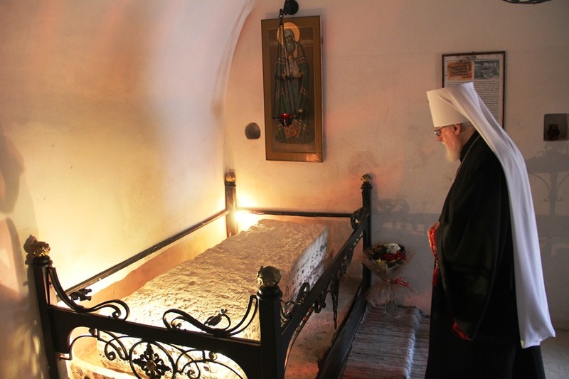 Перед началом богослужения митрополит Виктор почтил место погребения Патриарха Иова в усыпальнице монастыря.