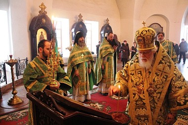 Высокопреосвященнейшему владыке сослужили благочинный Торжокского округа протоиерей Николай Алексеев, игумен монастыря иеромонах Арсений (Леонов), братия обители в священном сане, клирики Торжокского благочиния.