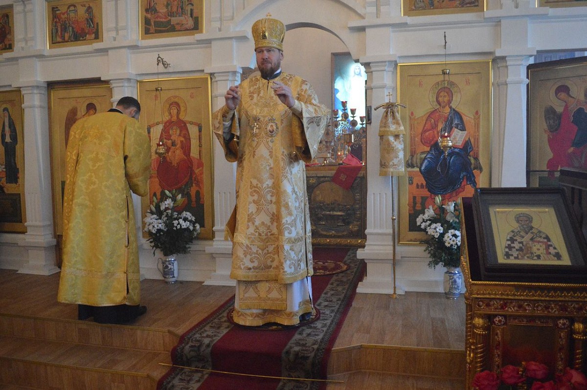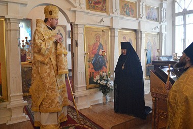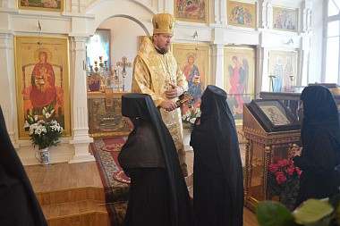 В монастырском храме священномученика Евсевия Самосатского Его Высокопреосвященству сослужили благочинный монастырей Владивостокской епархии, настоятель Свято-Серафимовского мужского монастыря игумен Климент (Кривоносов), протоиерей Вадим Маишев, иеромонах Иннокентий (Корчага), иерей Игорь Спицын.