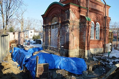 Проект реконструкции пристройки предполагает приведение ее в соответствие с самим храмом – с бетонным фундаментом, из кирпича, с соблюдением стиля и контуров основного здания.