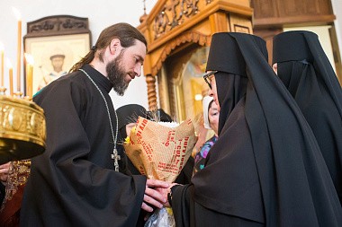 По окончании молебна владыка Владимир обратился к игумении Марии со словами поздравления: