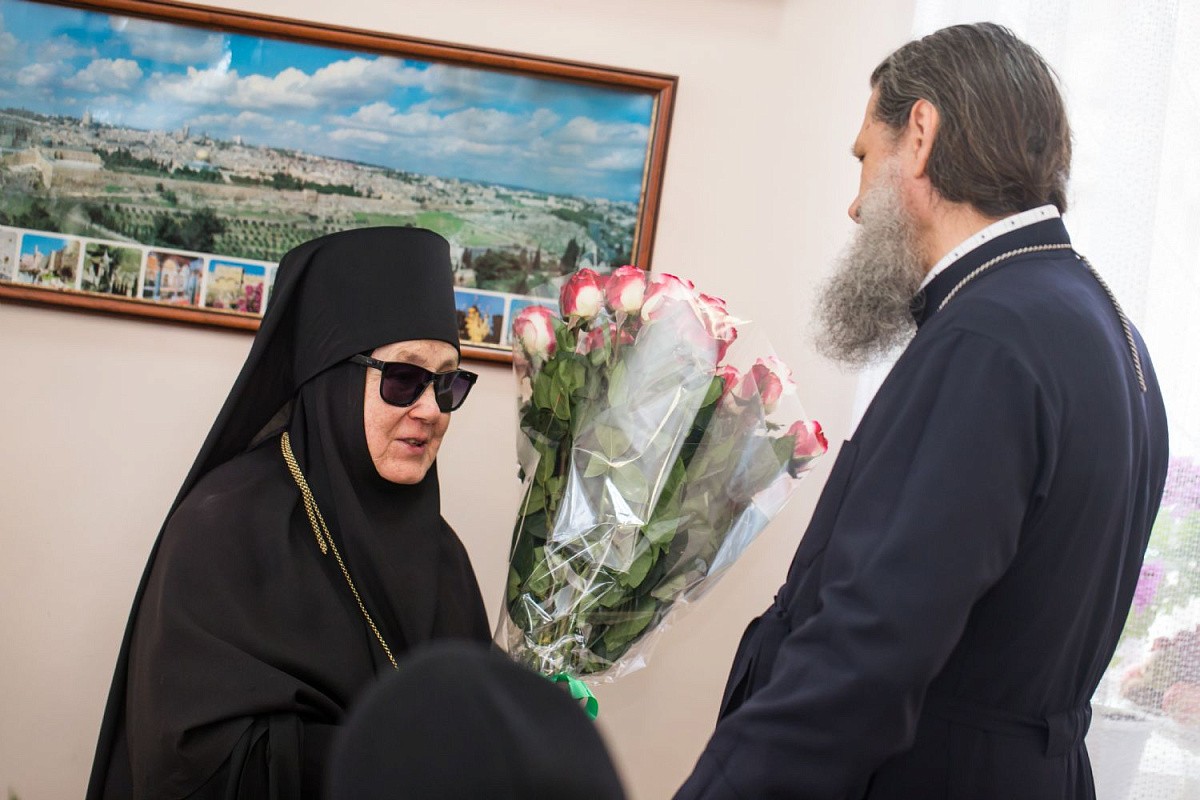 Со словами благодарности за устроение монастырской жизни желаю Вам в этот особый для Вас день Вашего 80-летия помощи Божией в трудах, крепости духовных и телесных сил, мудрости в окормлении обители, терпения в несении Вашего креста. Пусть Господь, даруя Вам радость духовную, ниспошлет с небес Свое утешение, дабы Вы еще многие и многие годы заботились о сестрах, принимали паломников и трудились во Славу Божию!»