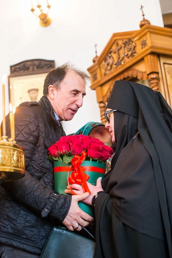Гости и прихожане монастыря также поздравили настоятельницу Марфо-Мариинской обители со знаменательной датой.
