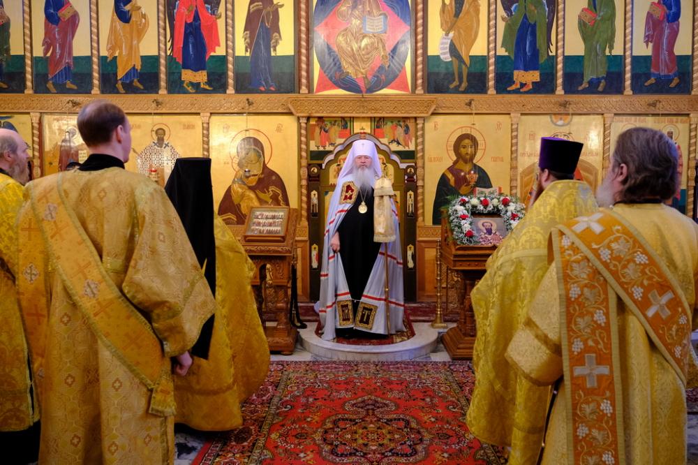 В завершение Литургии митрополит Тихон поздравил всех с престольным праздником и обратился к собравшимся с архипастырским словом.