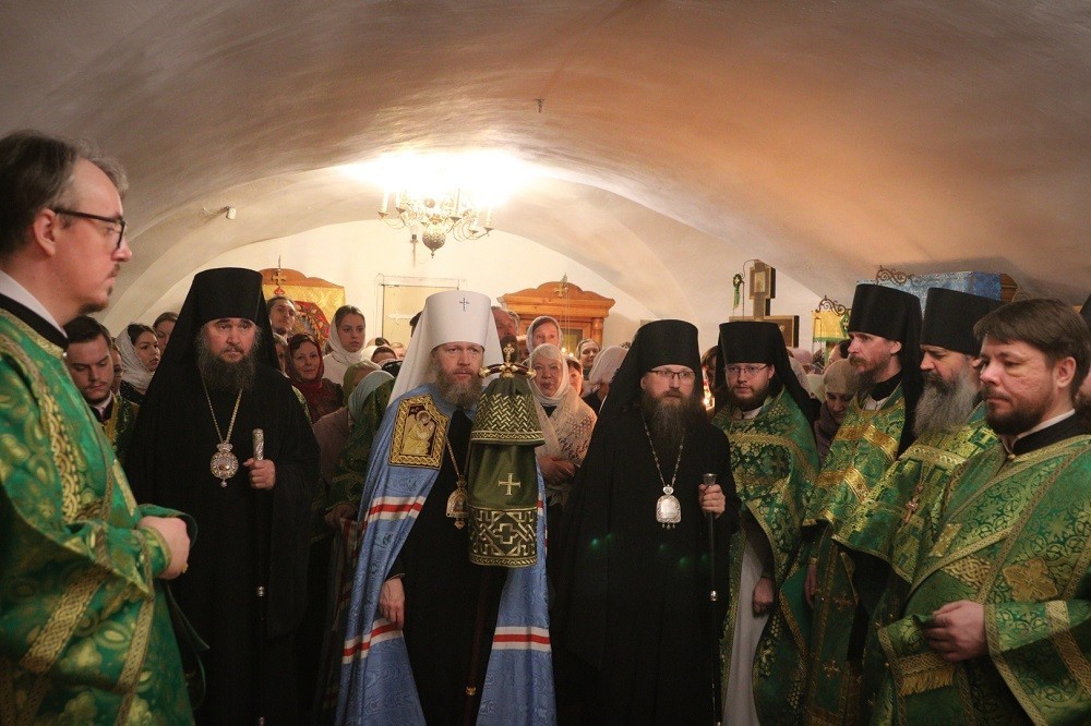 Высокопреосвященнейшему владыке сослужили: благочинный монастырей Вологодской епархии игумен Иоасаф (Вишняков), ректор Вологодской духовной семинарии протоиерей Алексий Ольховников, исполняющий обязанности наместника Спасо-Прилуцкого Димитриевого монастыря иеромонах Ферапонт (Широков), настоятель Спасо-Каменного Преображенского монастыря игумен Дионисий (Воздвиженский), настоятель Свято-Троицкого Павло-Обнорского монастыря игумен Игнатий (Молчанов), благочинный монастыря иеромонах Мартиниан (Киселев), келарь иеромонах Иларион (Свиридов), насельник монастыря иеромонах Тихон (Соколовский), а также монашествующие Череповецкой епархии в священном сане.