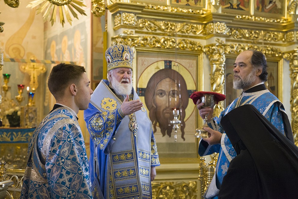 Его Высокопреосвященству сослужили клирики епархии.
