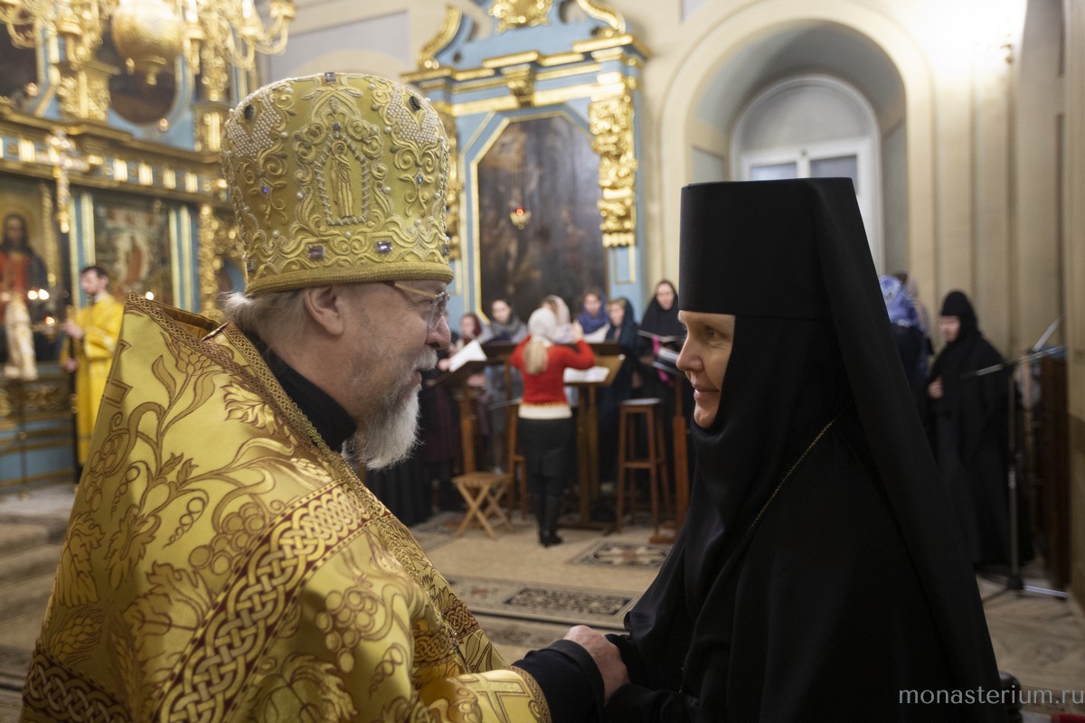 По завершении молебна владыка Ювеналий поздравил настоятельницу Богородице-Смоленского Новодевичьего женского монастыря игумению Маргариту (Феоктистову) с 55-летием со дня рождения, которое она праздновала в этот день.