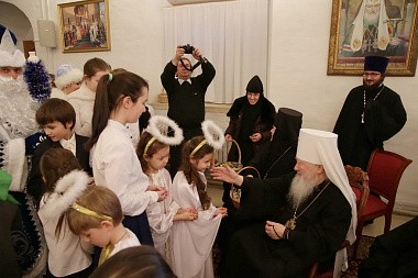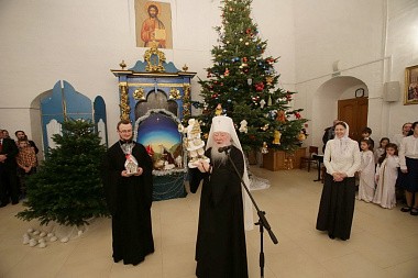 Детям и всем гостям праздника был представлен спектакль, подготовленный учениками Воскресной школы обители. В завершение праздника каждый получил от владыки митрополита рождественский подарок.