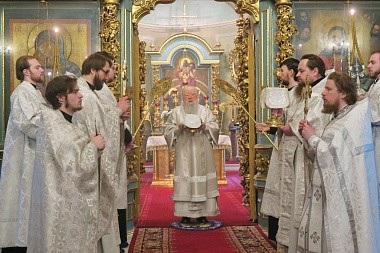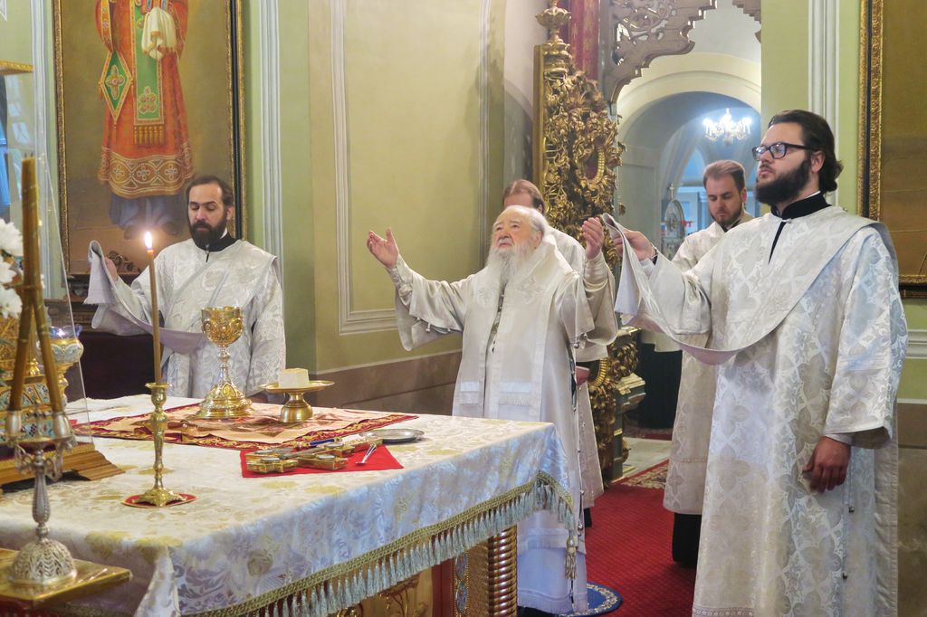 После сугубой ектении Патриарший наместник Московской епархии вознес молитву, чтомую во время распространения вредоносного поветрия.
