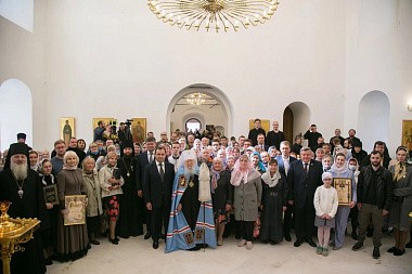 В дар митрополиту Ювеналию от духовенства и мирян Московской епархии был преподнесен образ Смоленской иконы Пресвятой Богородицы.