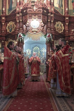 Его Высокопреосвященству сослужили: игумен Екатерининской обители епископ Видновский Тихон, секретарь Московского епархиального управления протоиерей Михаил Егоров, настоятель Христорождественского храма г. Домодедова протоиерей Александр Васильев, благочинный монастырей Московской епархии игумен Евмений (Лагутин); благочинные церковных округов Московской епархии: Видновского – священник Димитрий Березин, Подольского – протоиерей Олег Сердцев, Дмитровского – протоиерей Афанасий Чорногуз, Яхромского – священник Сергий Бернацкий, Домодедовского – священник Андрей Дьячков, духовенство Видновского благочиния.