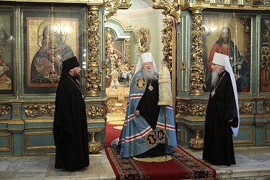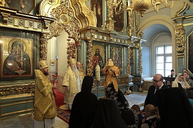 Его Высокопреосвященству в Успенском храме обители сослужили митрополит Берлинский Германский Марк, епископ Северобайкальский Сосново-Озерский Николай и духовенство обители.