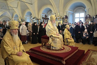 Сегодня у нас большая радость, которую можно сравнить с радостью грешного мытаря Закхея, который принимал у себя дома Спасителя мира (см.: Лк. 9, 1–10). В Новодевичьей обители – два архипастыря, которые вместе с нами совершили Божественную литургию. Я горячо и сердечно приветствую вас, дорогой владыка Марк, дорогой владыка Николай, и надеюсь, что, когда вы будете приезжать в Москву, в нашей обители вы будете находить и духовное прибежище, и гостеприимство.