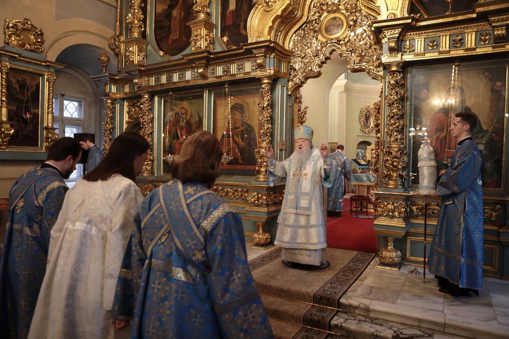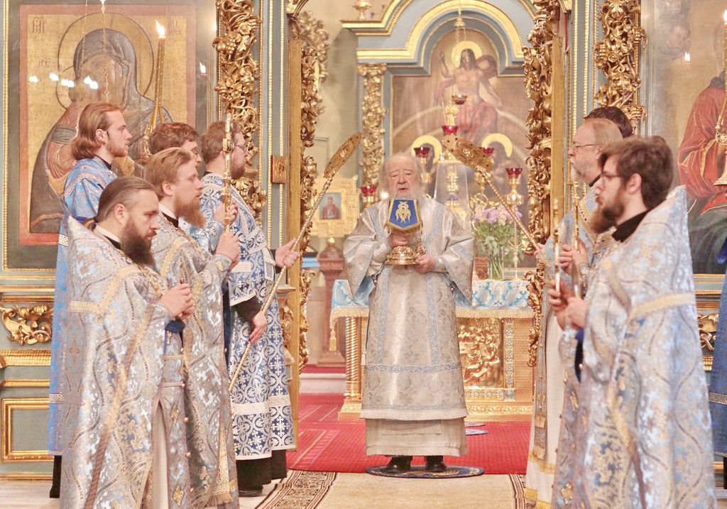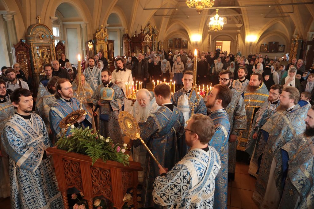 За Литургией были вознесены молитвы о упокоении митрополита Ленинградского и Ладожского Питирима (Свиридова) и новопреставленного протоиерея Иоанна Белевцева, профессора Санкт-Петербургской духовной академии.