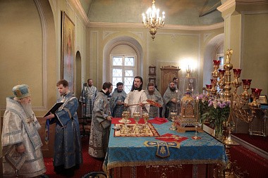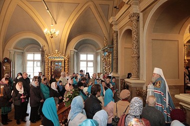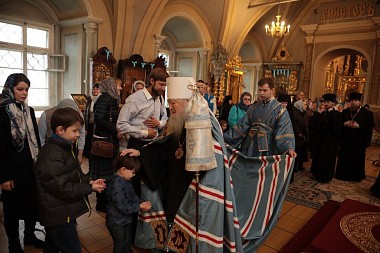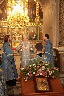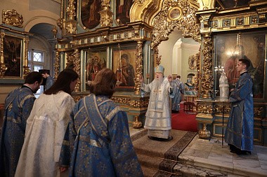 Накануне вечером владыка Ювеналий возглавил всенощное бдение с чтением акафиста Божией Матери перед Ее иконой «Казанская».