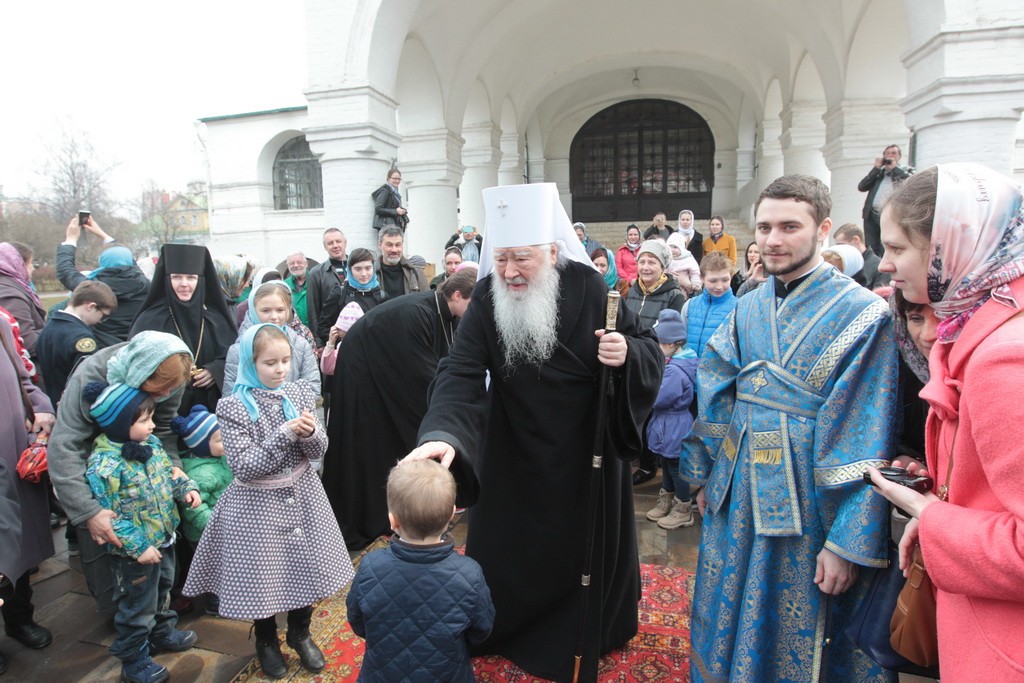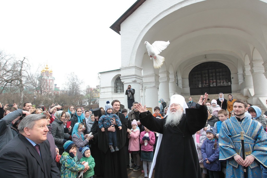 В завершение праздника владыка митрополит вместе с заместителем полномочного представителя Президента Российской Федерации в Центральном федеральном округе Н.П. Овсиенко, настоятельницей монастыря игуменией Маргаритой (Феоктистовой) и юными прихожанами выпустил на свободу голубей с паперти Смоленского собора обители.