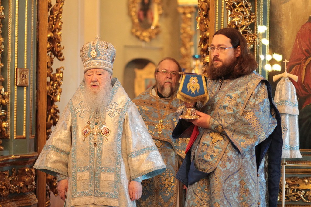 Я горячо и сердечно поздравляю вас с праздником, а причастников и причастниц – с принятием Святых Христовых Таин. По нашему обычаю, который возродился по благословению нашего почившего Предстоятеля, мы после Литургии выпускаем на свободу птиц. Это обычай, который был всегда на Руси. Кто из вас пожелает, я приглашаю всех к Смоленскому собору, где мы будем молиться и выпускать голубей. А вам всем желаю доброго здоровья, Божией помощи и предстательства, помощи и благословения Пресвятой Владычицы нашей Богородицы. Храни вас всех Господь».