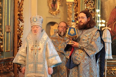 «Дорогие и возлюбленные братья и сестры! Я очень рад, что в праздник Благовещения Пресвятой Богородицы вы во множестве собрались в храм Божий, чтобы прославить Пресвятую Деву, помолиться Ей и испросить Ее благословения на нашу жизнь. Сегодня совершается и память святителя Тихона, Патриарха Всероссийского, который скончался в день Благовещения. Особенно хочется об этом сказать, когда все мы в этом году вспоминаем события столетней давности и то, что испытала Церковь Христова за эти сто лет. Святейший Патриарх Тихон с мудростью и твердостью вел нашу Церковь ко спасению, и мы видим, как по его молитвам Она сегодня возрождается. Наглядным примером этому было сегодня то, что множество детей причащалось Святых Христовых Таин. Они уже сознательно живут жизнью Церкви, учатся в Воскресной школе, участвуют в молитве. Сегодня они принятием Святых Христовых Таин всем нам свидетельствовали о своей вере.