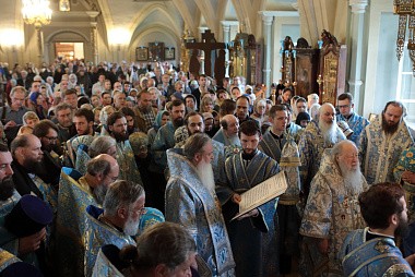 Его Высокопреосвященству сослужили епископ Илиан (Востряков), епископ Видновский Тихон, епископ Серпуховской Роман, епископ Зарайский Константин, епископ Луховицкий Петр, секретарь Московского областного епархиального управления протоиерей Михаил Егоров, духовенство Московской областной епархии, гости обители в священном сане.