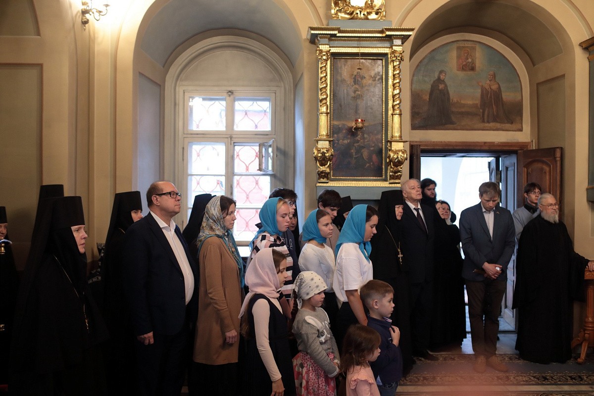 За Литургией молились заместитель министра образования Московской области Е.А. Михайлова, аудитор Счетной палаты Московской области М.Б. Захарова, глава городского округа Лыткарино Е.В. Серегин, игумении монастырей Московской областной епархии.