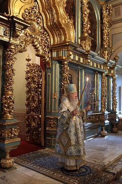 Накануне, 9 августа, митрополит Ювеналий возглавил в Успенском храме всенощное бдение.