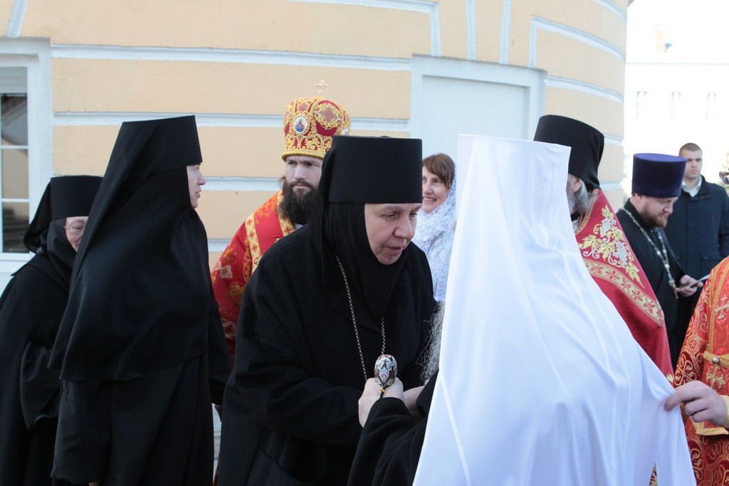 По окончании крестного хода со словами приветствия к митрополиту Ювеналию обратился благочинный церквей города Коломны и Коломенского округа епископ Луховицкий Петр:
