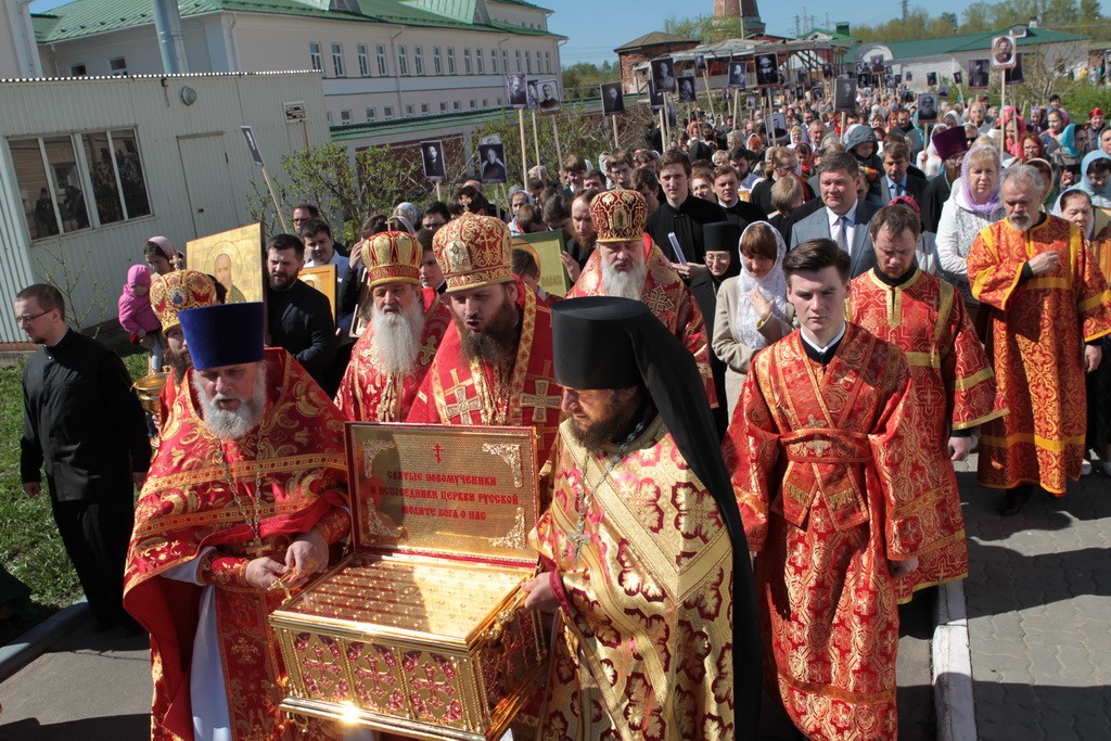После Божественной литургии состоялся крестный ход с ковчегом со святыми мощами новомучеников и исповедников Церкви Русской. Верующие пронесли по территории Старо-Голутвина монастыря специально изготовленные к этому дню хоругви с иконами и фотографиями сорока пяти коломенских новомучеников.