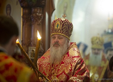 По окончании Божественной литургии владыка Ювеналий обратился к собравшимся с архипастырским словом и вручил игумену Екатерининского монастыря епископу Видновскому Тихону медаль Московской епархии «За жертвенные труды» I степени.