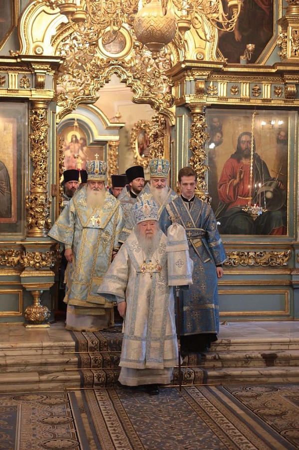 «Ваши Преосвященства, дорогие владыки, возлюбленные отцы, братья и сестры! Я рад, что сегодня, в престольный праздник нашей обители, мы собрались, чтобы помолиться Божией Матери, Которая, как мы слышали из Святого Евангелия, предрекла, что Ее "будут ублажать все роды" (Лк. 1:48). Она является Заступницей усердной рода христианского. Проходят века, а Ее Покров и заступничество неизменно обращены к роду христианскому. И как нам радостно, что в дни скорби и болезни мы обращаемся к Царице Небесной, просим Ее помощи и исцеления и с верой получаем просимое. Я счастлив, что сегодня мы во множестве собрались в этом святом храме, чтобы помолиться Царице Небесной, и я верю, что Ее предстательством Господь исполнит во благих прошения наша.