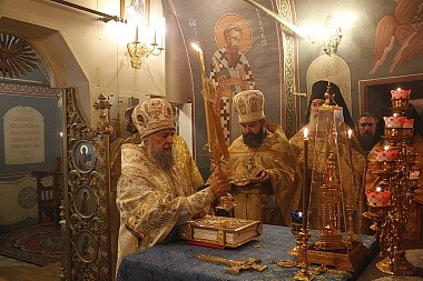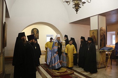 Его Высокопреосвященству сослужил духовник Саранской епархии, наместник обители игумен Мелетий (Кисняшкин) с братией монастыря в священном сане, настоятель храма в честь мученика Андрея Стратилата в поселке Левжинский архимандрит Савватий (Хрущ).