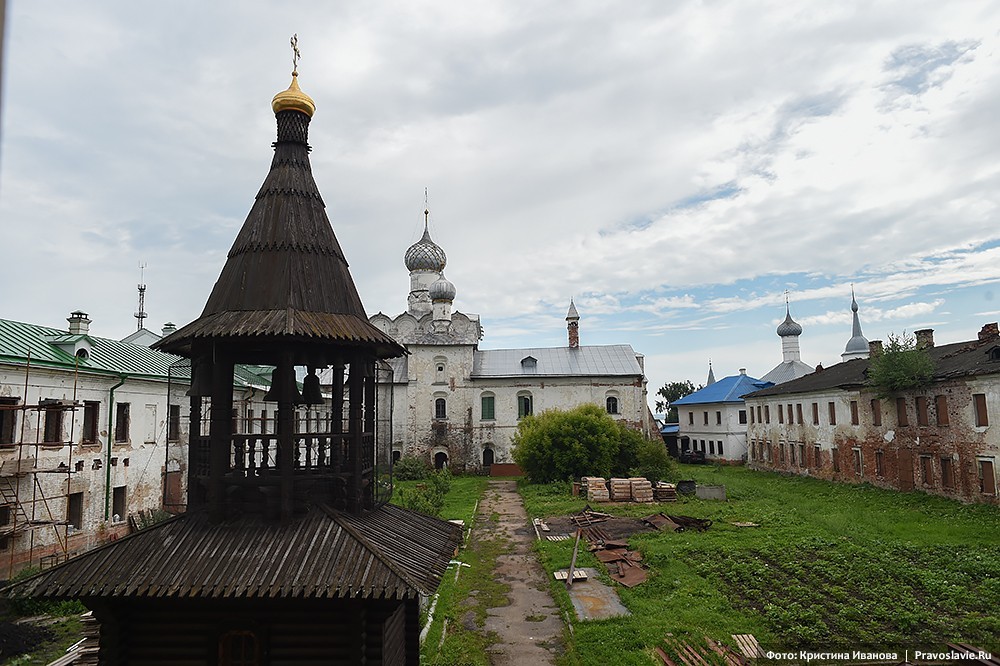 Собор в аварийном состоянии: полы отсутствуют, по стенам с фресками идут безобразные трещины, арки входов и потолки трапезной части подперты досками, чтобы штукатурка не обвалилась на головы посетителей. Монастырь в 200 метрах от Ростовского кремля. Это такое же уникальное наследие, федеральный памятник, и он погибает на наших глазах. В соборе необходимо предпринять хотя бы реанимационные работы.