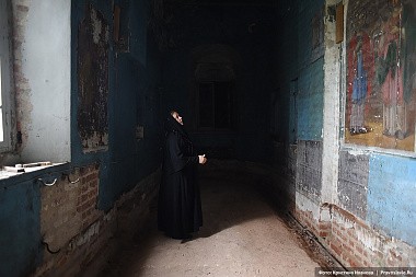 «Если нас застигнет последний день, то представляете, в чем Господь нас застанет? Мы взяли в руки кирпич и собираемся его положить в храм», ‒ рассказывает настоятельница обители игумения Афанасия (Силкина). – Корпуса были в ужасающем состоянии. Жить можно было только в игуменском. Ограды у монастыря не было, вместо дороги – рытвины. Люди сюда не ходили. Не было ни водо-, ни газопровода, на территории – разруха, мусор, завалы; земельный участок не оформлен в собственность монастыря, здания не переданы, нет проектной документации.