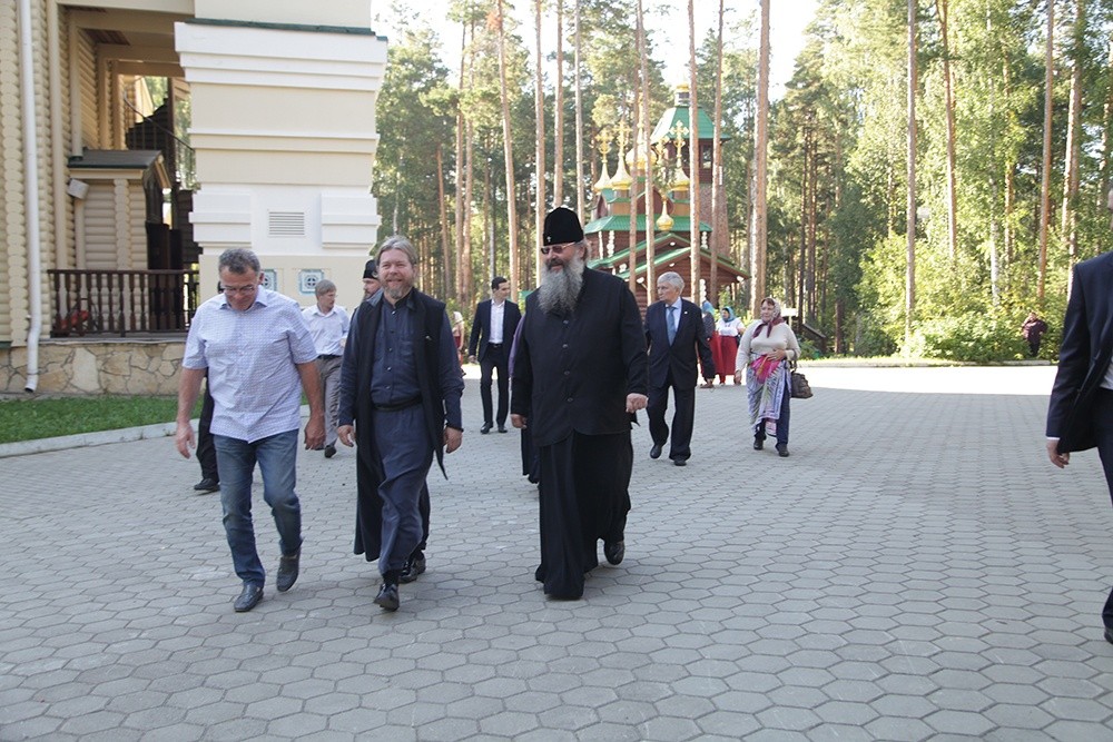 Епископ Егорьевский Тихон, викарий Святейшего Патриарха Московского и всея Руси, наместник Сретенского ставропигиального мужского монастыря, митрополит Екатеринбургский и Верхотурский Кирилл и епископ Среднеуральский Евгений посетили музейно-выставочный центр монастыря Святых Царственных страстотерпцев.