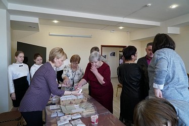 Во время регистрации в малом лекционном зале духовно-просветительского центра «София» для собравшейся молодежи и всех заинтересованных проводился мастер-класс от Боровского центра социальной помощи семье и детям «Гармония» по изготовлению «сухого душа» для участников СВО.