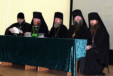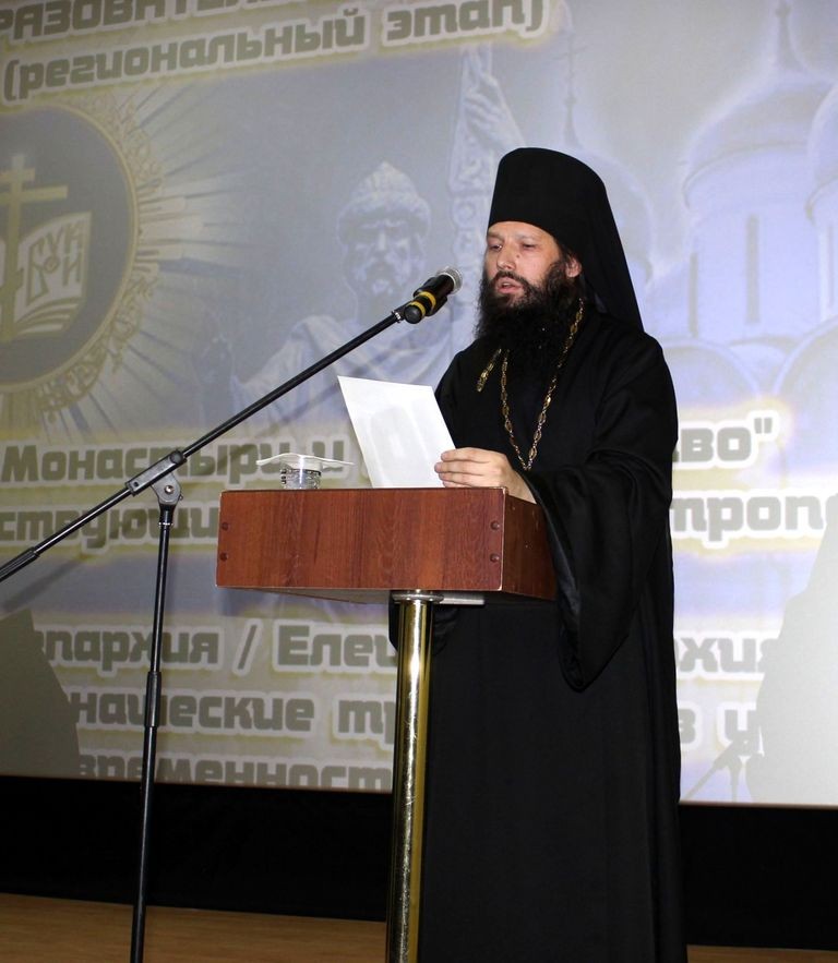 Епископ Усманский Евфимий, викарий Липецкой митрополии, обратился к собравшимся со словом приветствия и сообщением «Монашеский путь: вехи и рубежи», посвященным рассмотрению некоторых трудностей, возникающих перед монашествующими на пути их духовного становления и способам их преодоления.