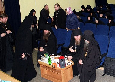 В работе приняли участие: епископ Елецкий и Лебедянский Максим, который по благословению митрополита Никона возглавил собрание и обратился к его участникам с приветственным словом и сообщением, раскрывшим перед присутствующими святоотеческие основы монашеского делания.