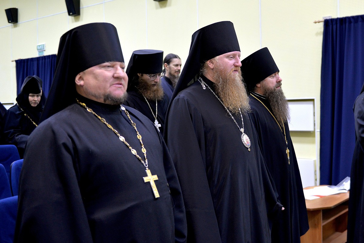 По благословению митрополита Никона собрание возглавил епископ Усманский Евфимий, викарий Липецкой митрополии. Его Преосвященство также обратился к собранию со словом приветствия. Поддерживая напутствие митрополита Никона, владыка Евфимий добавил, что сегодняшний мир изобретает множество соблазнов особенно для молодых людей, избравших для себя иноческий путь. Мир и диавол расставляют «ловушки», не отпуская из своих сетей, в том числе и посредством интернета. Значит, нужно понимать, что любое своевольное блуждание на просторах виртуального пространства является для монашествующих таким же выходом в мир, душепагубные последствия которого обязательно будут, поскольку соблазны, с которыми приходится сталкиваться в цифровом информационном поле, чаще всего оказывают на неопытную душу воздействие еще более тягостное и губительное, чем жизнь действительная.